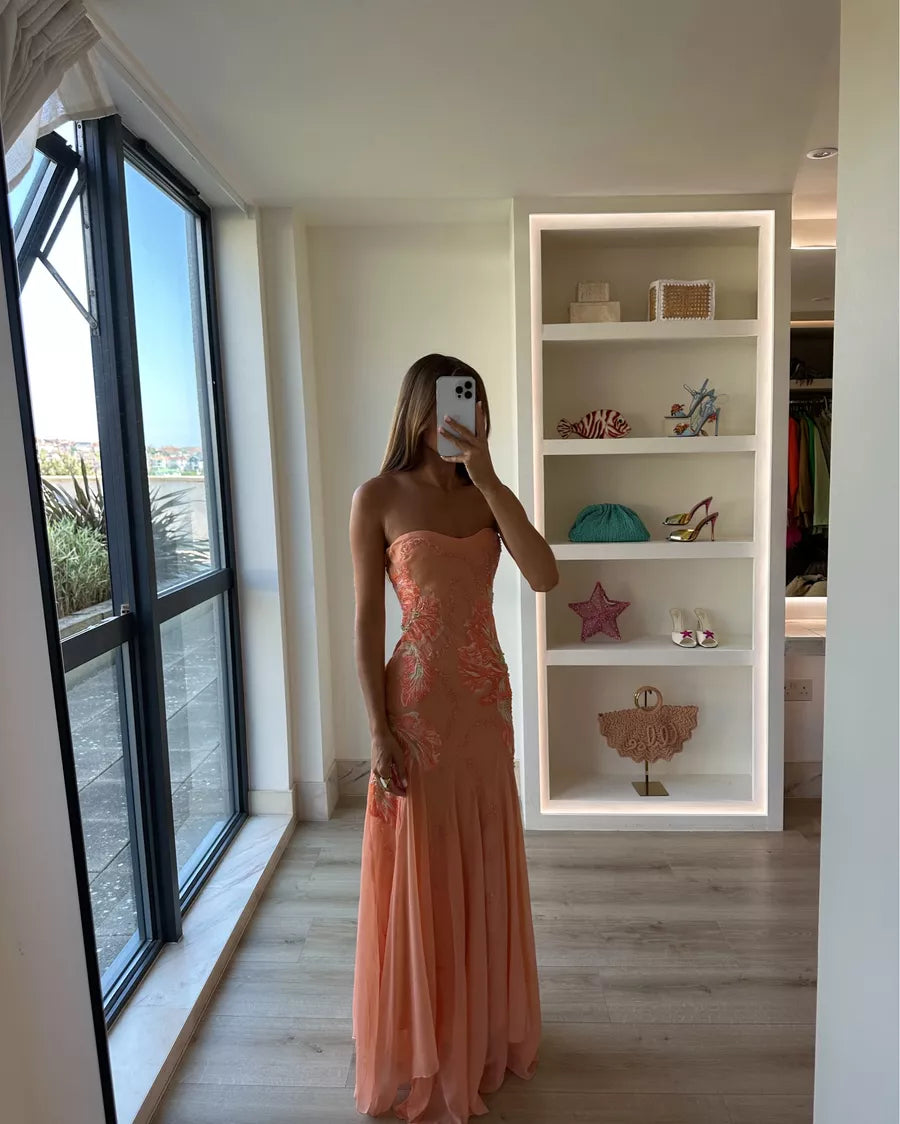 Bandeau floral embellished maxi dress